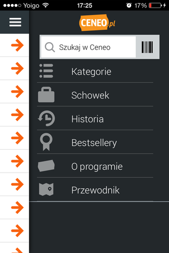 Aplikacja Ceneo umożliwia także zapisywanie danych wyników wyszukiwania do schowka oraz przeglądanie historii poszukiwań. Poza tym, można przejrzeć kategorię bestsellery, z najlepiej ocenianymi produktami.