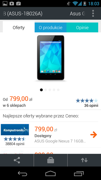 Ceneo działa bardzo dobrze i szybko. Nawigacja aplikacji jest świetnie zaprojektowana, dzięki czemu łatwo można odnaleźć daną rzecz. Interfejs opiera się na wysuwanych kartach i zakładkach, które wprowadzają porządek do tej ogromnej bazy. Ceneo jest również bardzo czytelne.